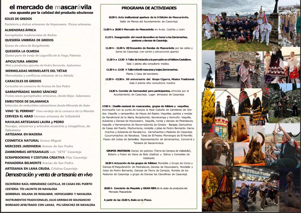 10.30h. Acto institucional apertura de la X Edición de Mascarávila. Salón de Plenos del Ayuntamiento de Casavieja