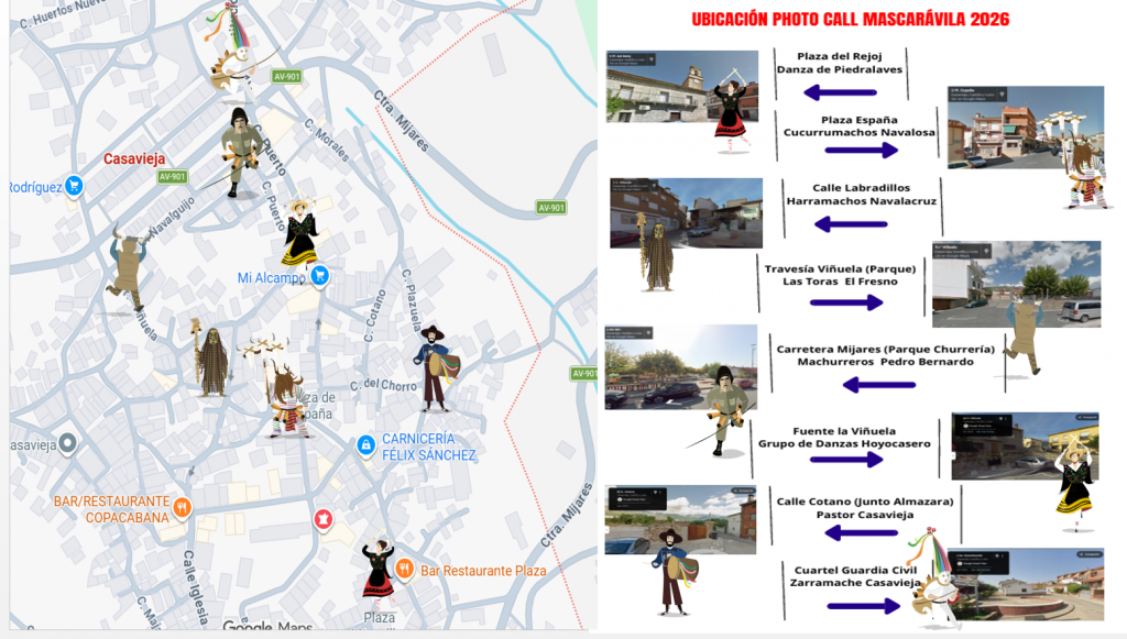 ¿Quieres llevarte el mejor recuerdo de esta X edición? Hemos repartido por toda Casavieja una serie de Photo Calls espectaculares de nuestras mascaradas y danzas. ¡Es tu oportunidad de ponerte en la piel de nuestros personajes tradicionales!